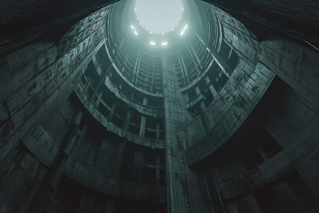 Midjourney prompt: a massive majestic monolithic structure nestled deep within a towering offworld space port. Damp night scene. eye-level shot. Canon EF 16-35mm f/2.8L III USM lens on a Canon EOS 5D Mark IV camera –ar 3:2 –style raw –v 6.0